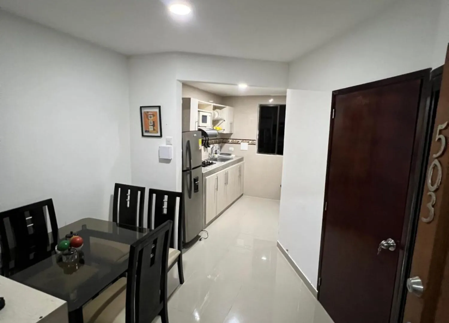 Zu den Annehmlichkeiten des Apartments gehört eine Küche.